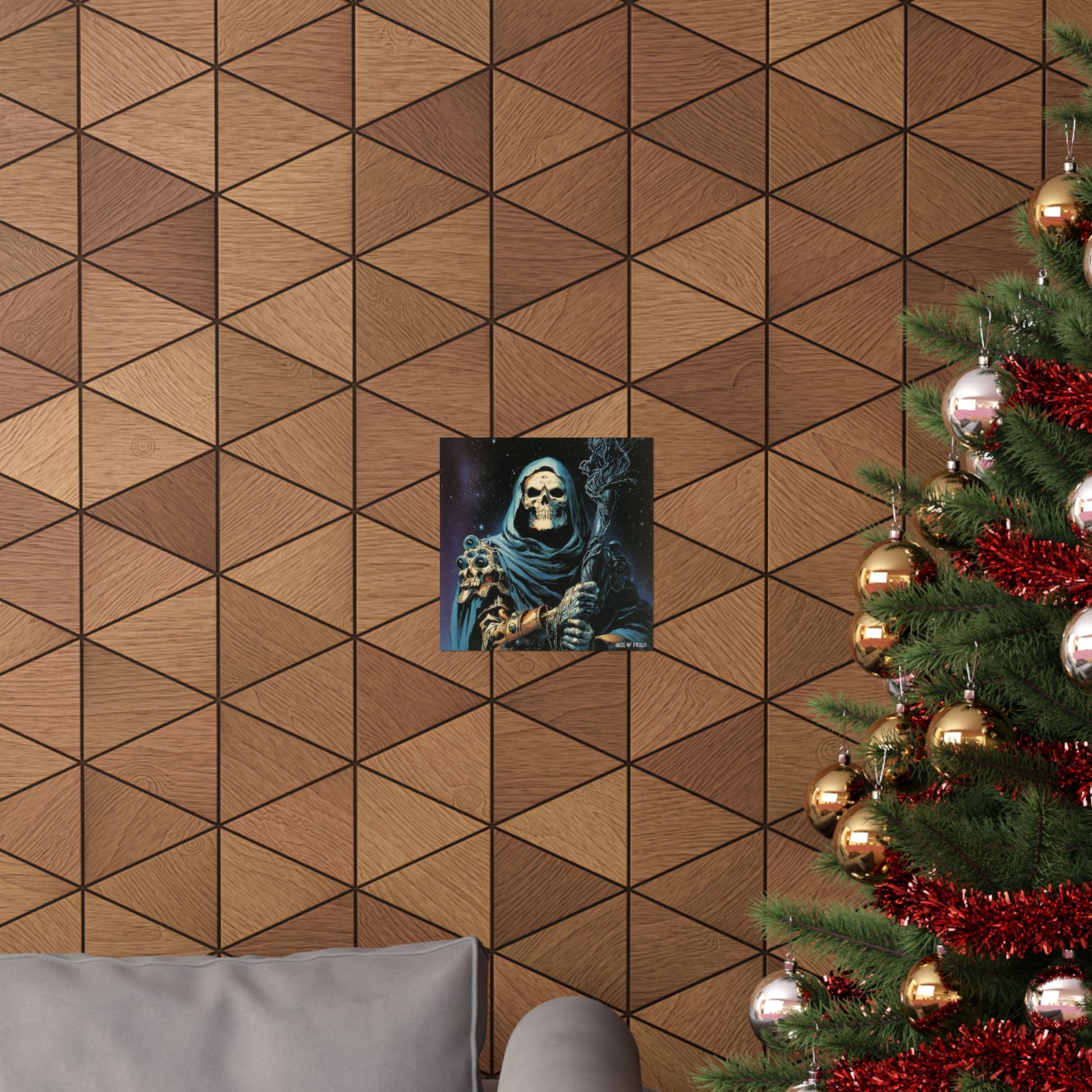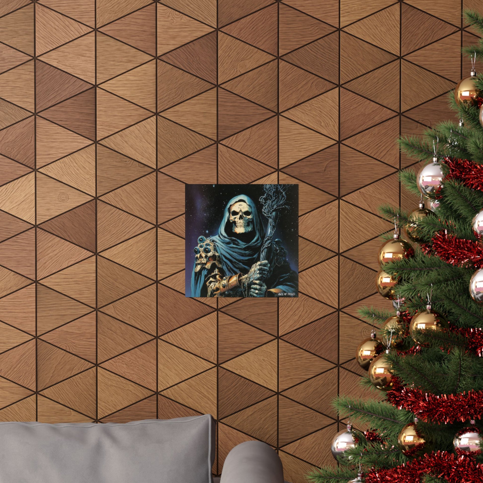 A striking matte poster that brings moody, dark-fantasy energy into any room. Printed on museum-grade archival paper with giclée inks, the artwork’s deep blacks and icy blues stay vivid while the matte finish reduces glare and gives the image a gallery-quality presence. The illustration—an enigmatic hooded skeletal figure with ornate bone and jewel details—evokes late-night storytelling, tabletop campaigns, and a love of macabre illustration. Hung above a gaming table, in a studio, or inside a collector’s wall, this poster adds atmosphere and a focused, cinematic mood to the space.