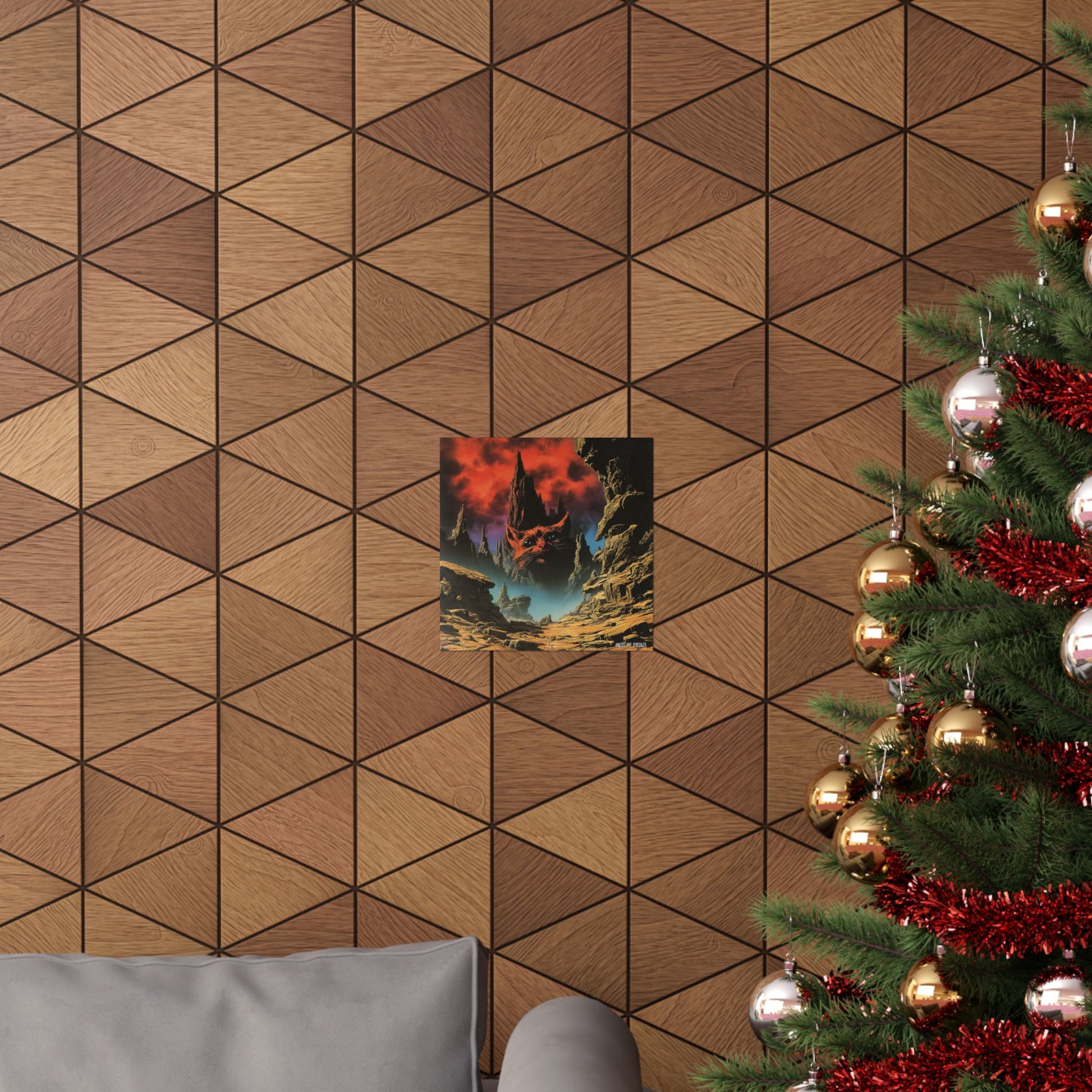 A moody, otherworldly poster that brings a dark-fantasy landscape into your room. Jagged rock spires rise through a blood-red sky while a large, snarling visage seems to emerge from the clouds — a scene that feels both alien and alive. The matte surface softens glare and deepens shadow detail, letting the intense giclée colors read rich and layered without reflections. Hang it in a reading nook, studio, or gallery wall to create an atmosphere of raw imagination and quiet unease. This print sits quietly bold, inviting long looks and late-night daydreams.